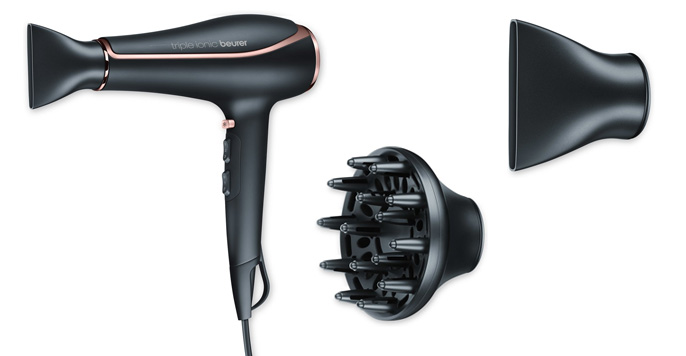 Verder heeft de föhn 3 warmtestanden en 2 ventilatorsnelheden. Ook zit er een koude lucht stand op, een normaal snoer van 1,5 meter en een lus om de föhn op te hangen. Je krijgt bij deze Beurer föhn een diffuser en een smal mondstuk. Het mondstuk is voorzien van een geluidsdemper zodat de föhn minder herrie maakt.